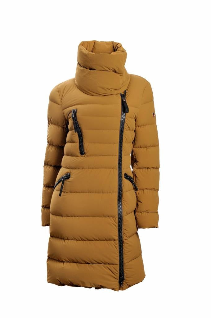 Der Damen Daunenmantel "KATANEC" in Braun-Gold hält Sie auch bei kälteren Temperaturen zwischen 10° und -15° perfekt warm. Dank der Daunenwattierung in Kombination mit hochwertigsten Materialien bietet er optimalen Schutz vor Kälte. Der Mantel besticht optisch durch seinen wunderschönen Kragen und den schmalen Schnitt, der jede Silhouette bestens zur Geltung bringt. Ausgestattet mit einem seitlichen Reißverschluss, einem extra hohen Kragen und extra großen Reißverschlüssen bietet dieser Mantel höchsten Komfort und Stil. Das Obermaterial ist zudem sehr weich und angenehm zu tragen. Verfügbar in Größe IT/DE.